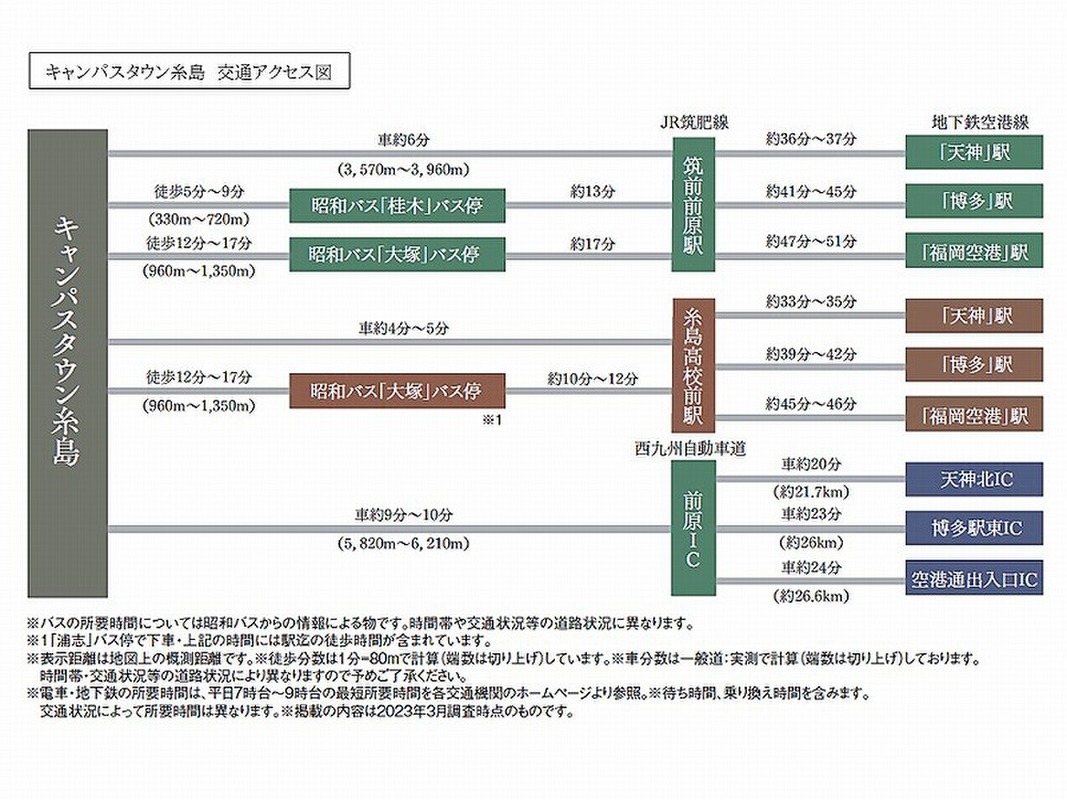 JR筑肥線「筑前前原」駅 徒歩45分 昭和バス約13分「桂木」バス停 徒歩5分 昭和バス約13分「大塚」バス停 徒歩12分 |
