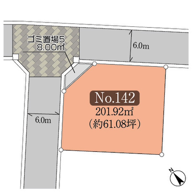 | 駐車場 | 1台 ~ 2台 | 道路の幅員 | 幅員6.0m(アスファルト舗装) |