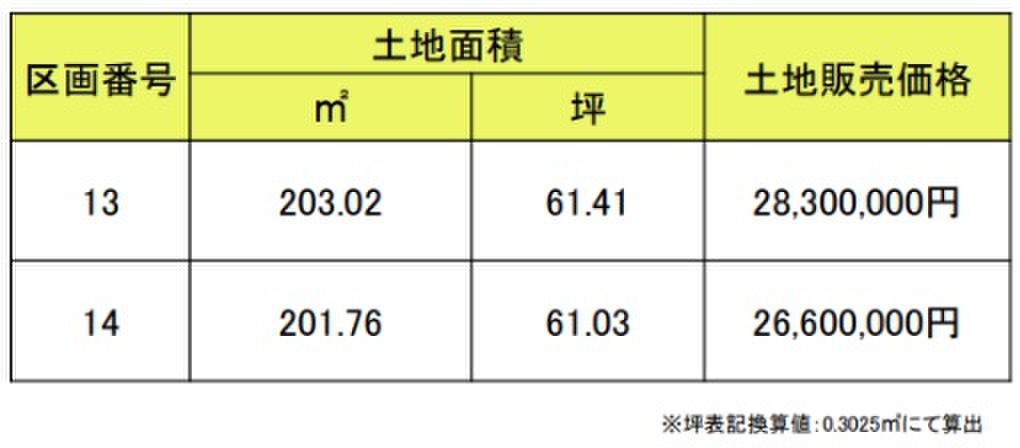 | 建物面積 | - | 土地面積 | 201.76m2~203.02m2(全2区画) |
