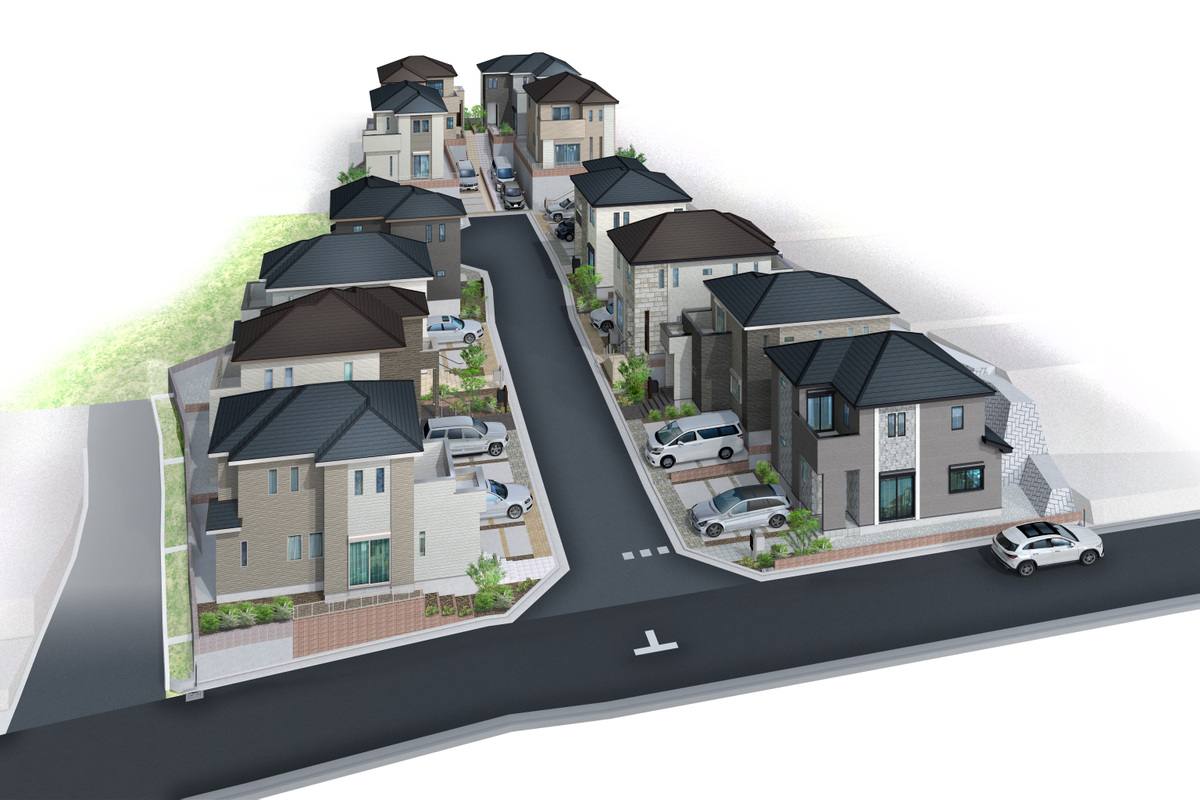 - ※完成予想図やCG合成画像は、門塀・植栽・庭・外観等、実際とは多少異なる場合があります。