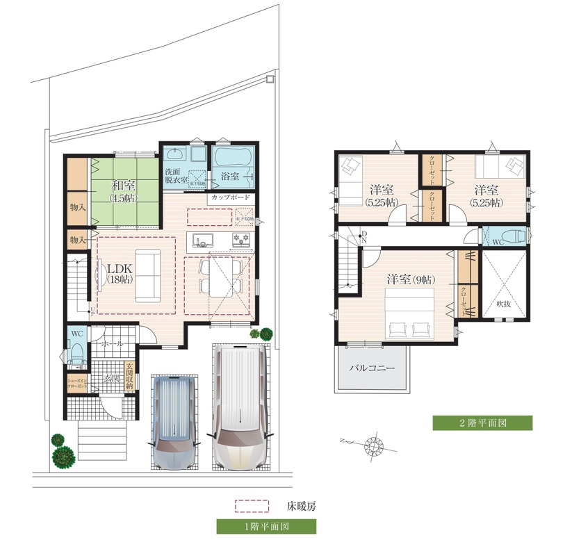 平均約136m2以上のゆとりある敷地面積!車2台でもバッチリ駐車可能!