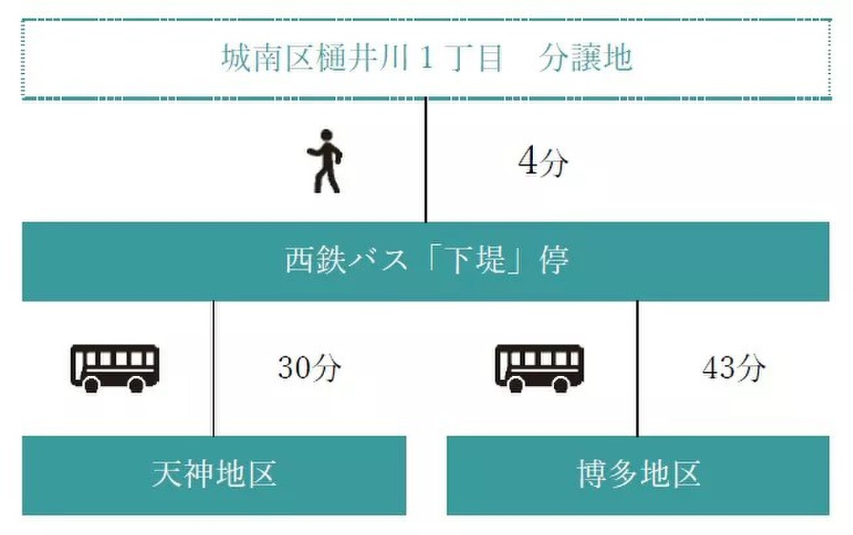 西鉄バス「下堤」停 徒歩4分 福岡市地下鉄七隈線「福大前」駅 徒歩31分 福岡市地下鉄七隈線「七隈」駅 徒歩32分 |
