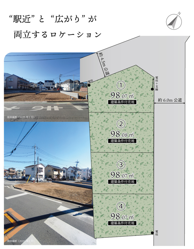 | 駐車場 | - | 道路の幅員 | 北東側:約6.0m公道、北西側:約4.5m公道 |