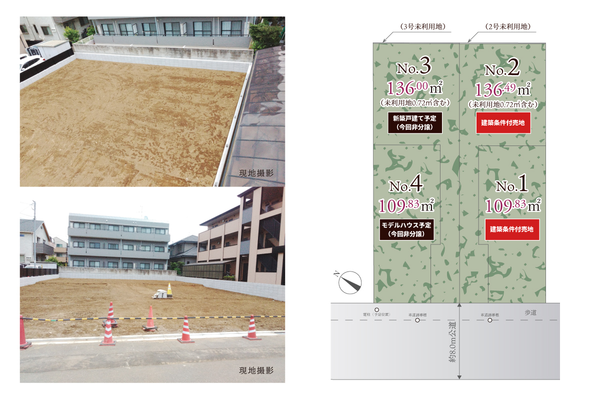 | 建築条件 | 建築条件付 建築条件付き土地とは一定期間内に、その土地に建築する建物の請負契約が締結されることを条件に販売される土地のことです。 土地売買契約締結後、建築請負会社と購入した土地に建築する建物について協議することになります。広告に参考プランが掲載されている場合でも、プランは一例であり、実際の建築プランは建築請負会社と土地購入者で協議・検討することが可能です。 期間内に建築プランが決まらず建築請負契約が成立しなければ土地売買契約は白紙となり、支払済みの金銭はすべて返還されます。 建築請負会社が指定されている場合と指定されていない場合があります。 また、建築条件付き土地の価格には、建物価格は含まれません。 |