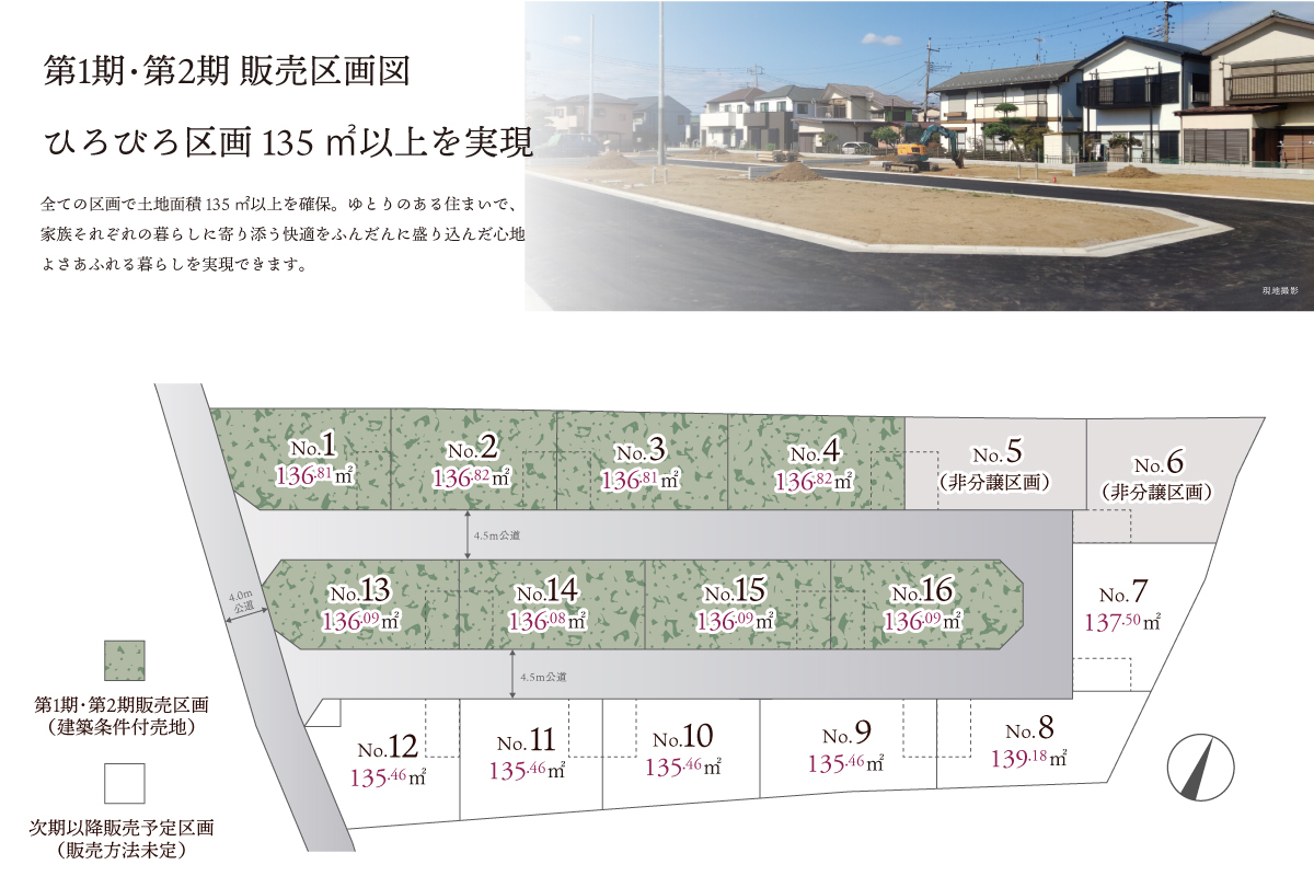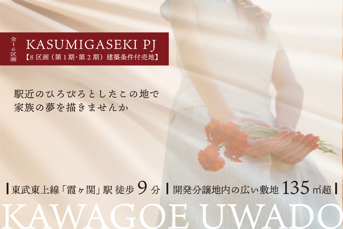 駅近のひろびろとした、この地で家族の夢を描きませんか。東武東上線「霞ヶ関」駅 徒歩9分に全16区画の大型開発分譲。全区画135m2を超え、駅近でありながらのびのびした環境の街並みが形成されます。