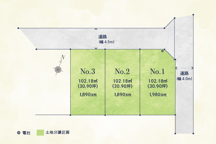 | 販売価格 | 1890万円(2区画)~1980万円(1区画) | 最多価格帯 | - |