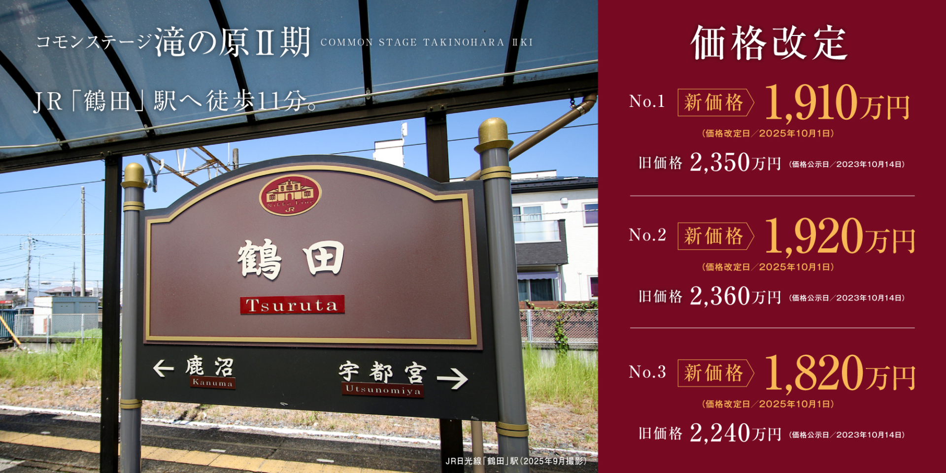 JR日光線「鶴田」駅 徒歩11分 東武宇都宮線「南宇都宮」駅 徒歩12分~13分 |