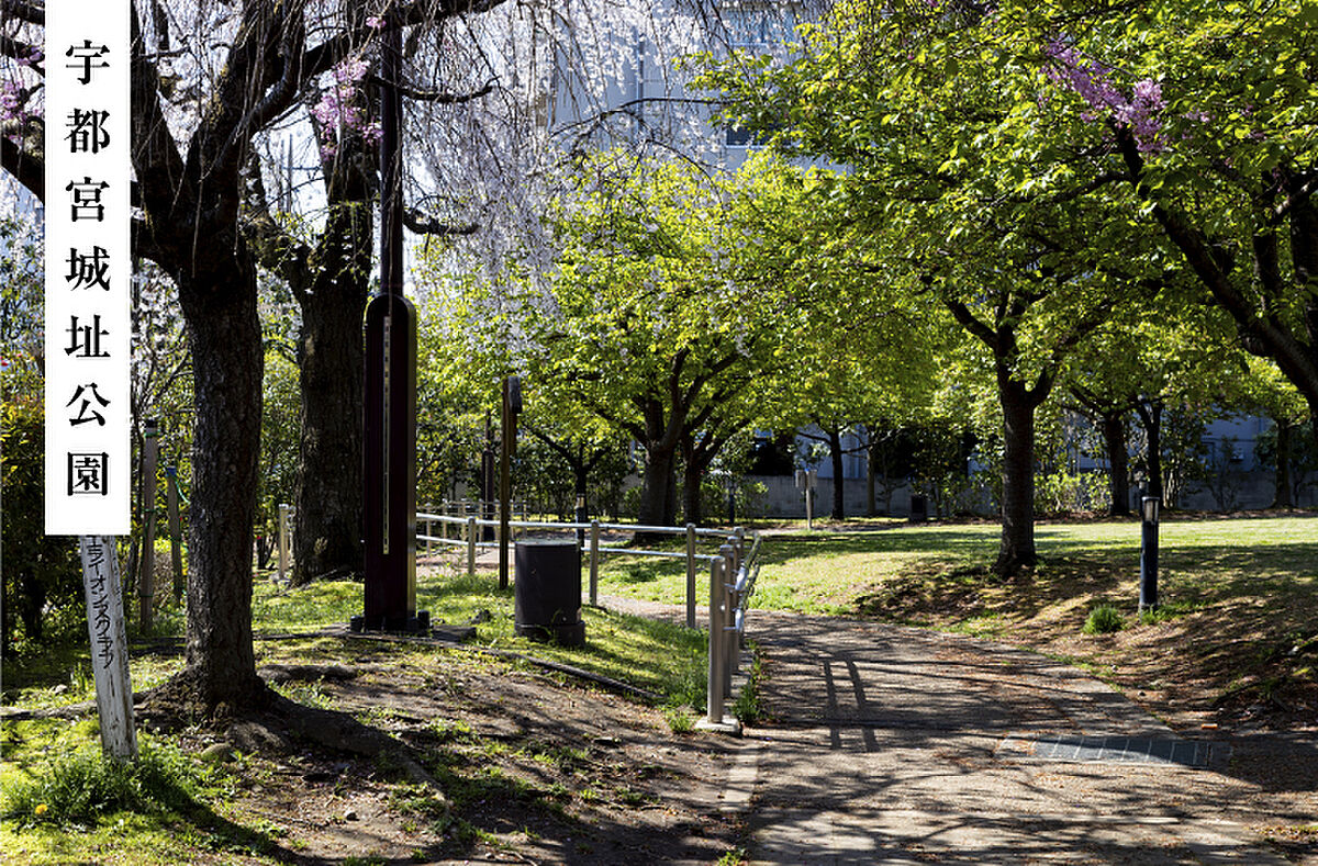 宇都宮城址公園 (現地から640m~700m。 徒歩8分~9分。)