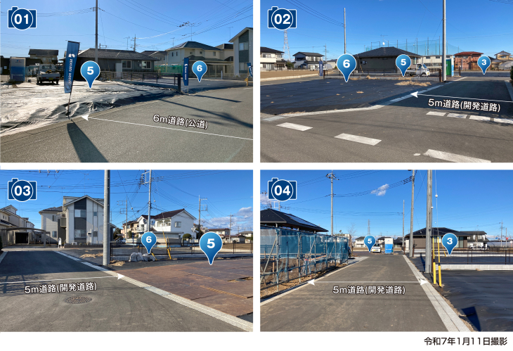 | 駐車場 | - | 道路の幅員 | 道路幅:5m~6m/道路幅の備考:南5m(開発道路)アスファルト舗装・西4.9m(市道)・西5m(開発道路)アスファルト舗装・北6m(市道) |