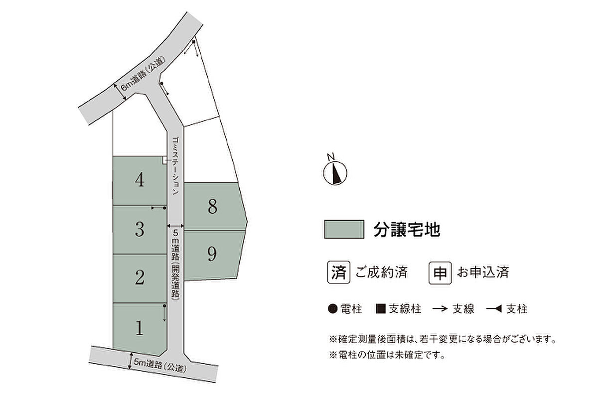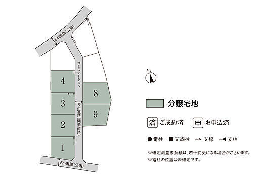 | 備考 | 景観法、都市再生特別措置法、盛土規制法●道路の幅員及び舗装/南5m(公道)・東5m(開発道路)アスファルト舗装・西5m(開発道路)アスファルト舗装・北6m(公道)●手付金等保全機関:西日本住宅産業信用保証(株)●坪表示は、1m2=0.3025坪で換算し、小数第3位以下切り捨てとしました。●良好な住環境を保つため「コモンステージ古河市上辺見まちなみガイドライン」がございます。●先着順の為、売約済の場合がございます。予めご了承ください。●宅建業法33条に規定する許可等の処分の番号/古建指令第255号 許可番号第67号●本分譲地の土地売買契約は、契約締結後3ヶ月以内に売主である積水ハウス株式会社との間で建築工事請負契約が成立することを条件として効力を生じます。期限までに、建築工事請負契約が成立しなかったときは、土地売買契約の無効が確定し、受領済の手付金等は、全額無利息にてすみやかに返還いたします。 | ||
