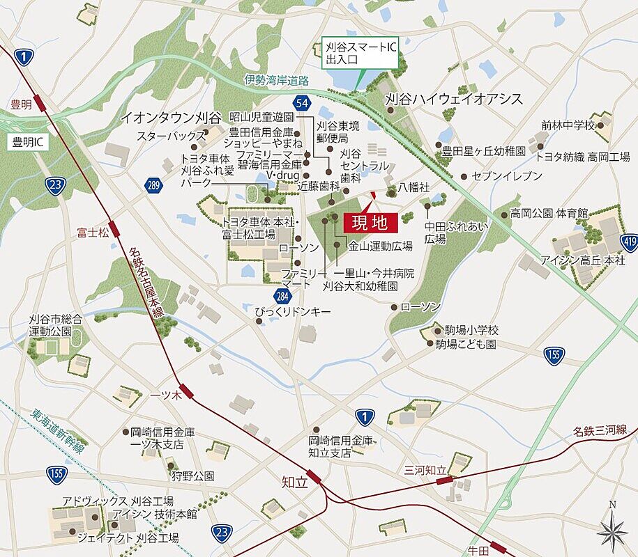 周辺には自然豊かな環境や「刈谷ハイウェイオアシス」へのアクセスも良好で穏やかな生活が待っています。