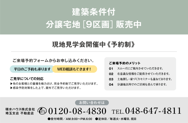 近隣建物や接道の状況など資料で分からない部分も一目瞭然。 まずはWEBで事前予約、スムーズに見学しましょう