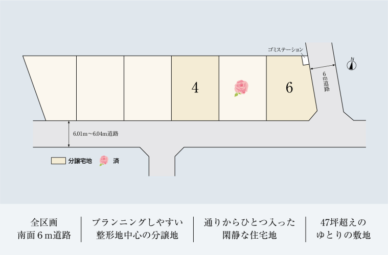 | 販売区画数 / 総区画数 | 2区画 / 6区画 | ||