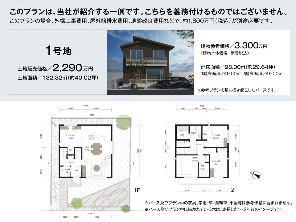 - ※完成予想図やCG合成画像は、門塀・植栽・庭・外観等、実際とは多少異なる場合があります。