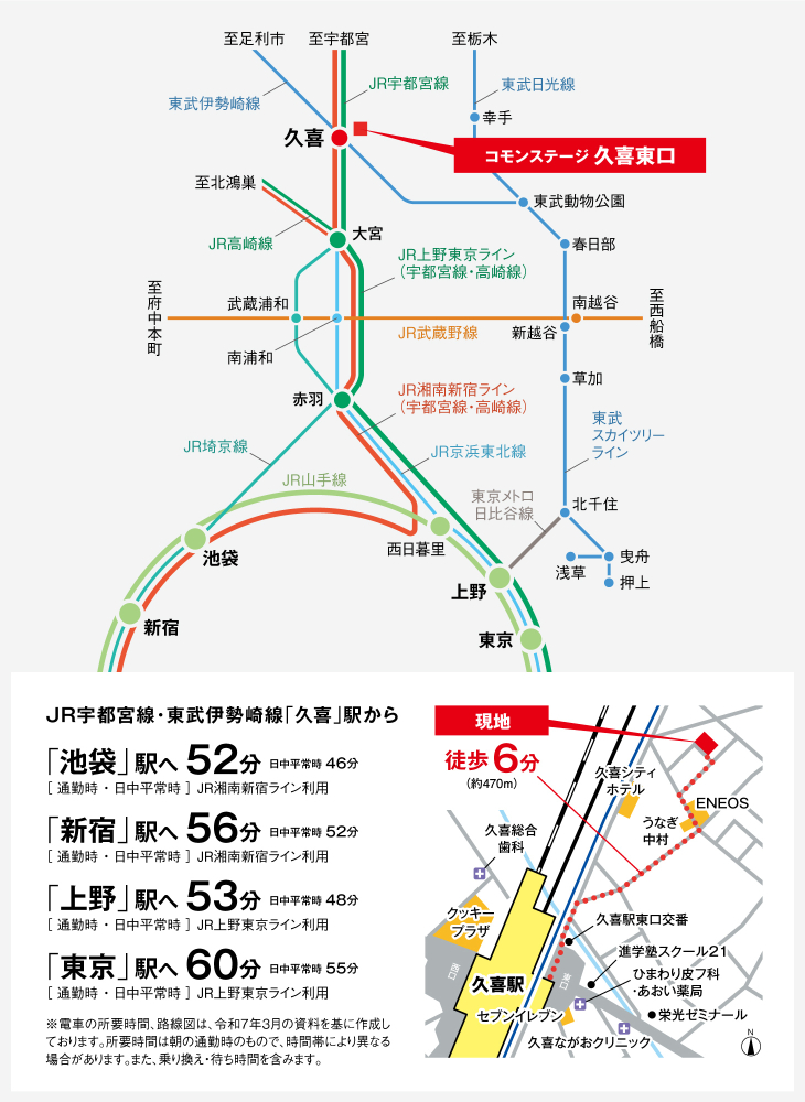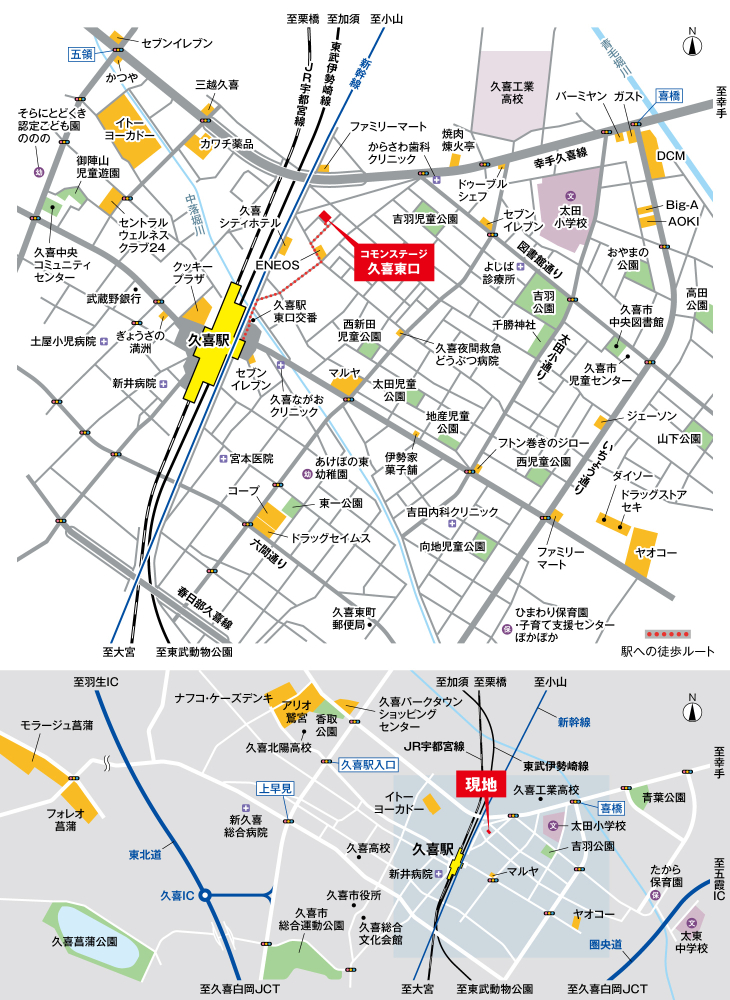 湘南新宿ライン宇須「久喜」駅 徒歩6分 東武伊勢崎線「久喜」駅 徒歩6分 東武日光線「幸手」駅 徒歩42分 |