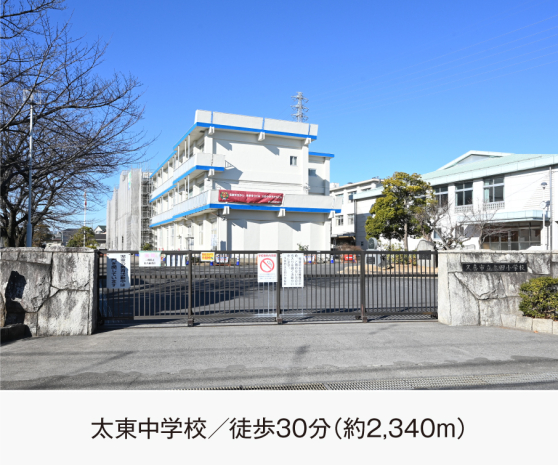 太東中学校 (現地から2340m。 徒歩30分。)
