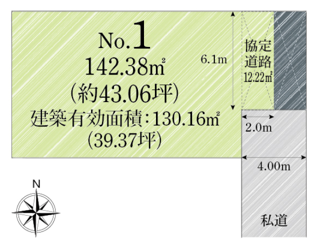 | 建物面積 | - | 土地面積 | 142.38m2私道負担有り私道負担あり。私道は1/2ずつ共有持分として所有頂きます。 |