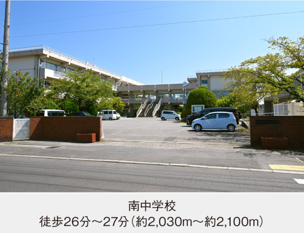 南中学校 (現地から2030m~2100m。 徒歩26分~27分。)