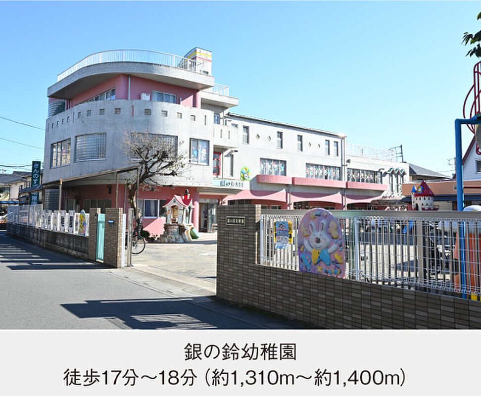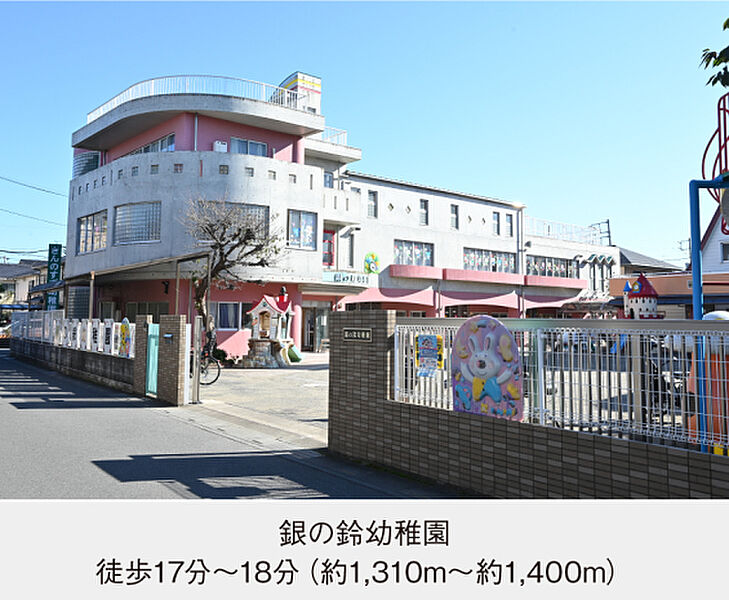 銀の鈴幼稚園 (現地から1310m~1400m。 徒歩17分~18分。)