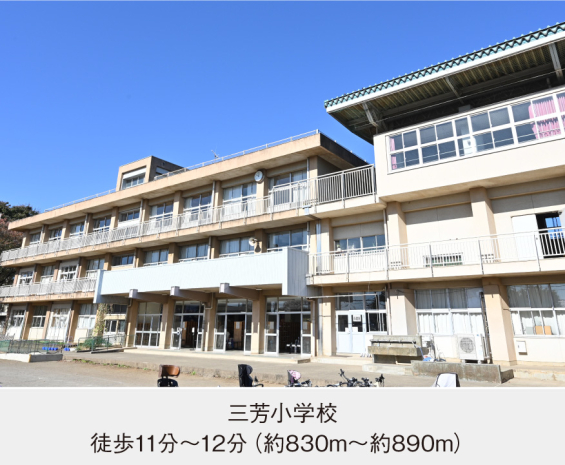 三芳小学校 (現地から830m~890m。 徒歩11分~12分。)