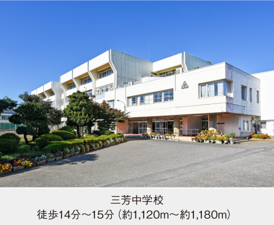 三芳中学校 (現地から1120m~1180m。 徒歩14分~15分。)