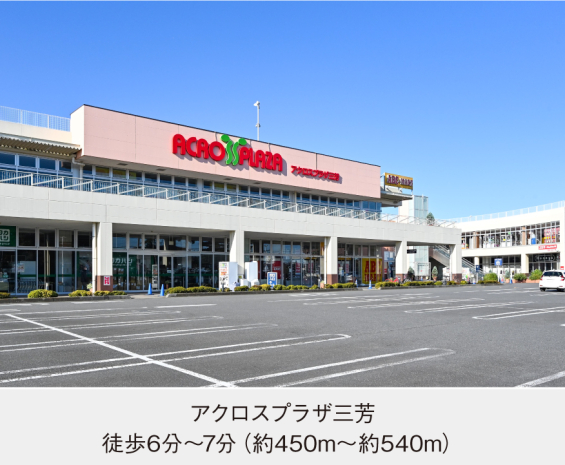 アクロスプラザ三芳 (現地から450m~540m。 徒歩6分~7分。)