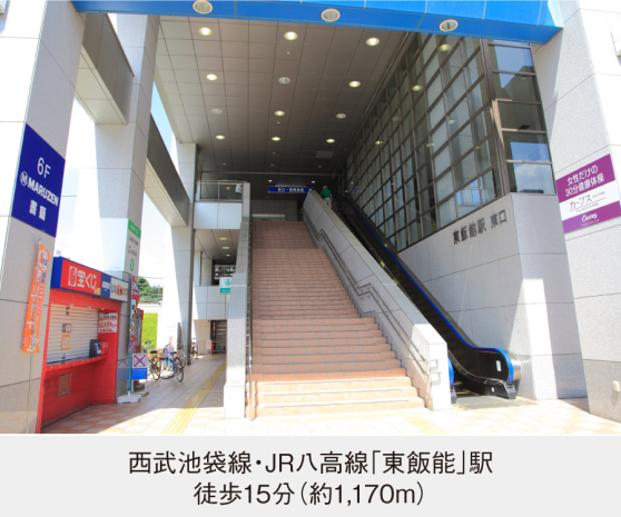 ■JR八高線「東飯能駅」まで徒歩15分(約1,170m)■西武池袋線始発駅「飯能駅」まで徒歩22分、または自転車で約10分(約1,740m)