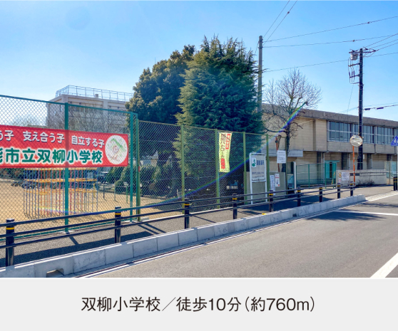 双柳小学校 (現地から760m。 徒歩10分。)
