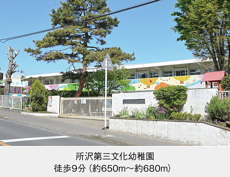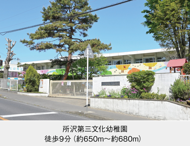 所沢第三文化幼稚園 (現地から650m~680m。 徒歩9分。(最長))