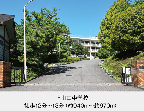 上山口中学校 (現地から940m~970m。 徒歩12分~13分。)