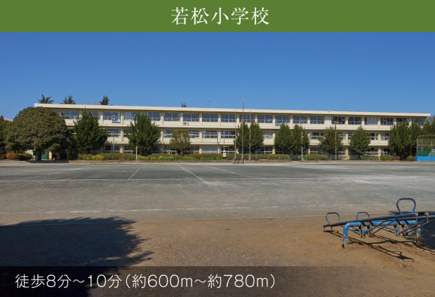 若松小学校 (現地から600m~780m。 徒歩8分~10分。)