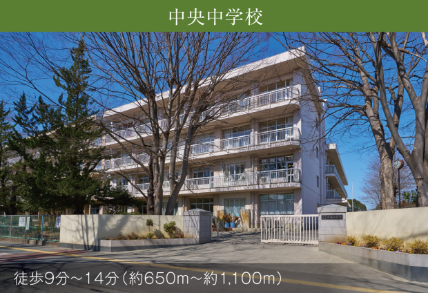 中央中学校 (現地から650m~1100m。 徒歩9分~14分。)
