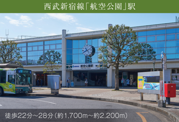 西武新宿線「航空公園」駅 (現地から1700m~2200m。 徒歩22分~28分。)