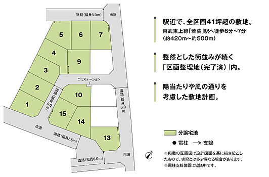 ■全12区画、土地面積41坪超の駅近の分譲地■大型商業施設ワカバウォークまで徒歩8分~9分(約590m~約670m)■関越道「鶴ヶ島IC」まで車で9分(約2900m~約2980m)