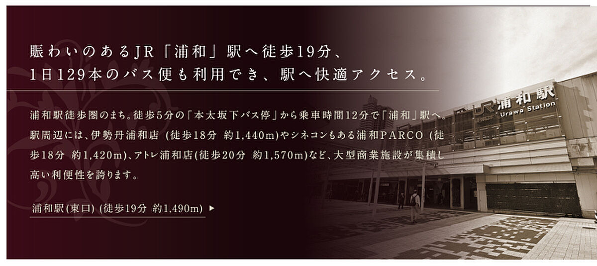 JR京浜東北・根岸線「浦和」駅 徒歩19分 JR京浜東北・根岸線「北浦和」駅 徒歩23分 JR京浜東北・根岸線「南浦和」駅 徒歩35分 |