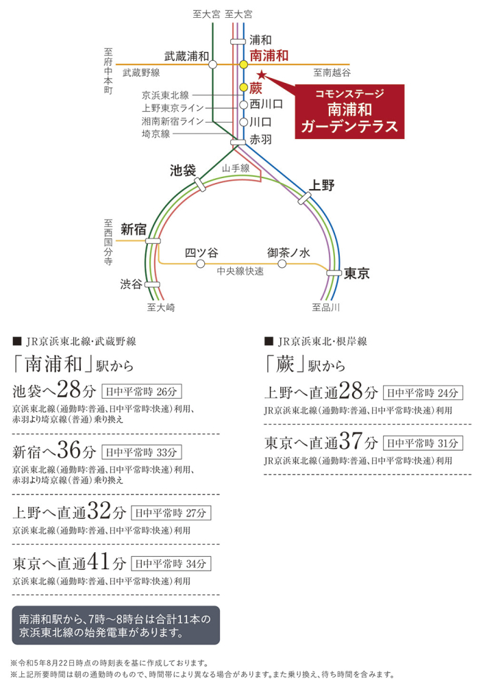 JR京浜東北線と武蔵野線の2路線が利用可能。特に京浜東北線は始...