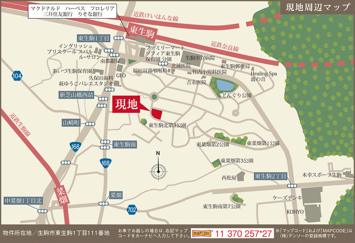 近鉄奈良線「東生駒」駅 徒歩5分 近鉄生駒線「菜畑」駅 徒歩9分 |