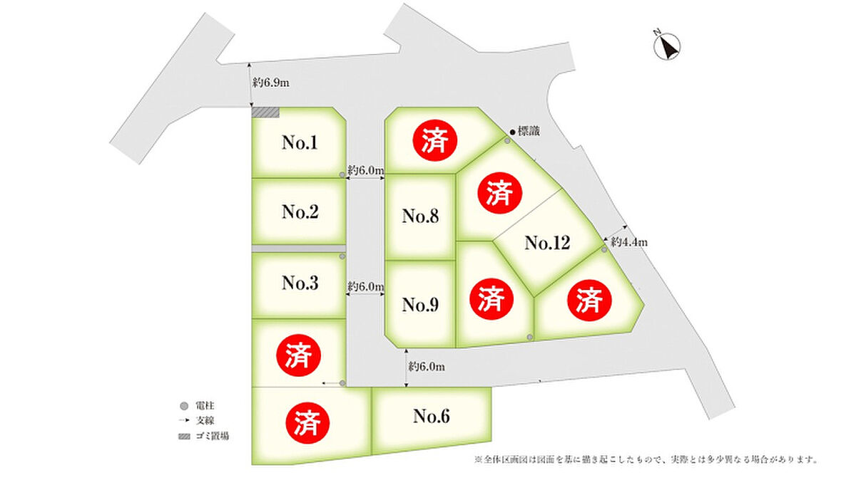 | 造成完了予定日 | 完成済(No,1・No,2・No,3・No,6・No,8・No,9、他) | 引き渡し可能年月 | - |