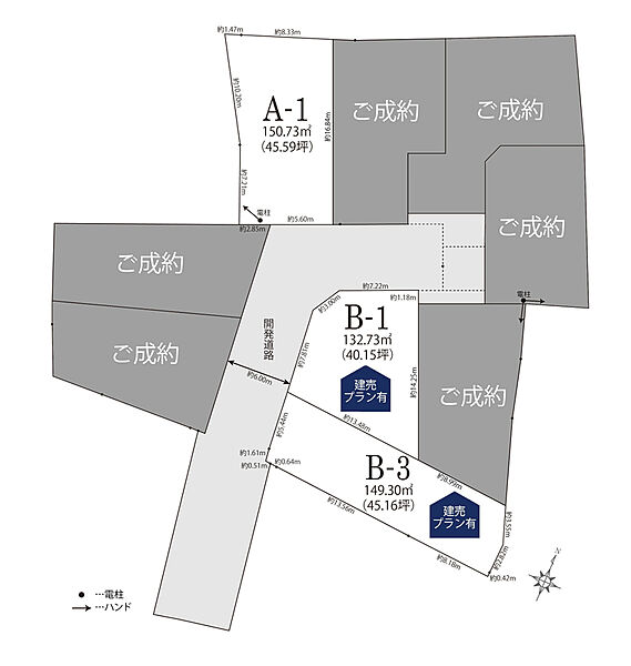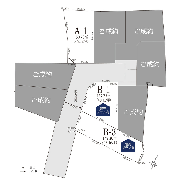 | 建物面積 | - | 土地面積 | 132.73m2(B-1区画)~150.73m2(A-1区画) |