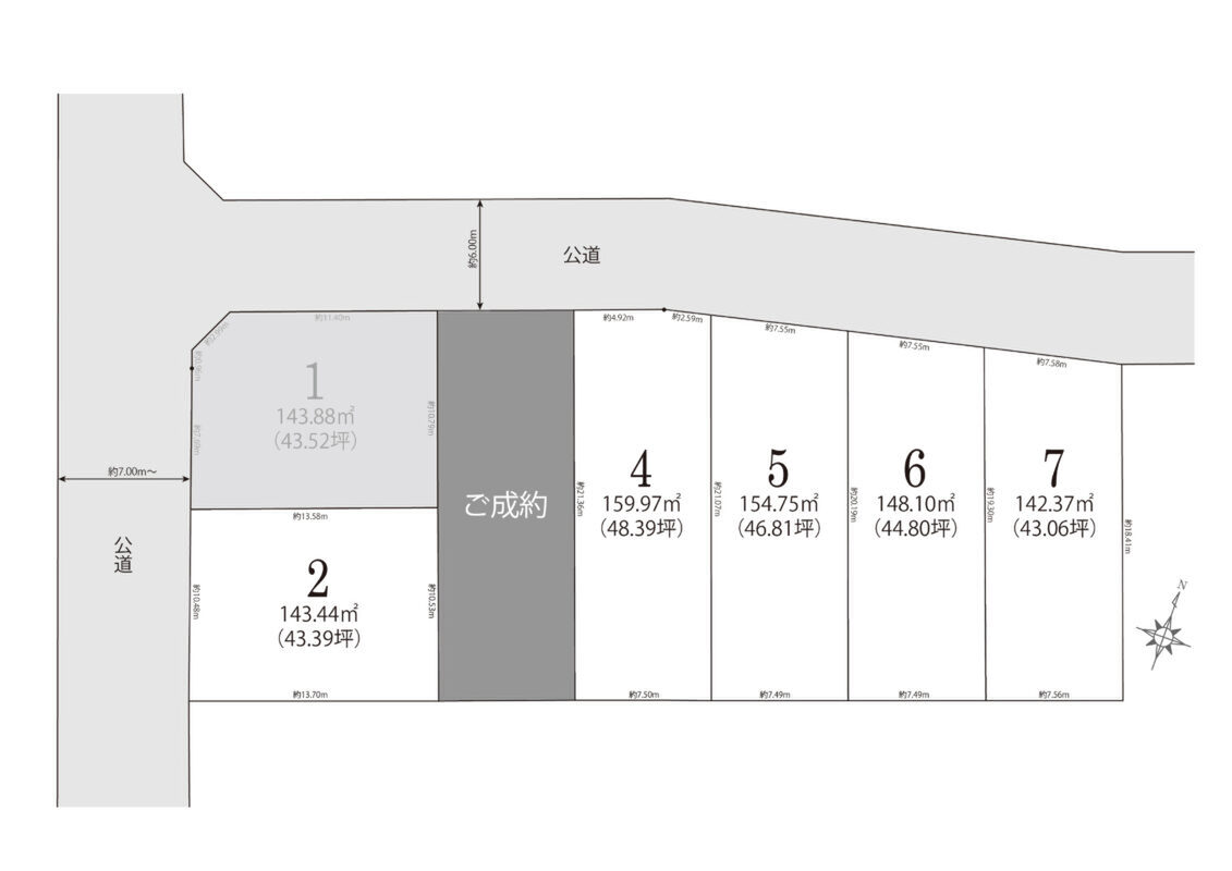 | 建物面積 | - | 土地面積 | 142.37m2(No.7)~159.97 m2(No.4) |