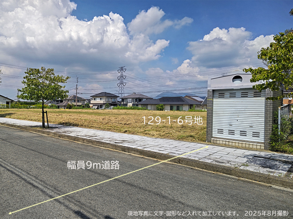 | 主たる設備の概要 | 電気(九州電力)ガス(都市ガス・筑紫ガス)水道:公営水道、雑排水・汚水:公共下水道、雨水:U字側溝、街路灯(設置済)※水道加入負担金有り(20mm/210,000円税込) | 開発許可番号 | 完成済(129-1-1、129-1-3、129-1-4、129-1-5、129-1-6、137-1-4、138-2、138-3、138-4、140-3-5、140-3-6) |
