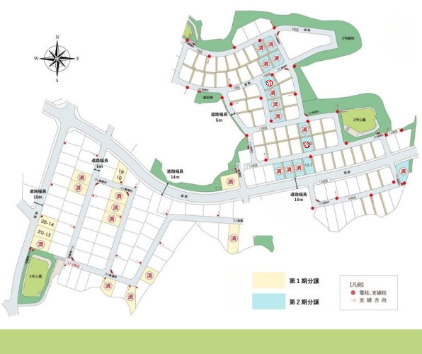 | 備考 | ・地区計画あり(泊大塚溜池南地区地区計画)・最低敷地面積230m2・壁面後退1m以上・緑化率20%・B地区高さ制限10m全体区画数130区画(内販売代理29区画)(1)建物の建築に際し「エネファーム」の導入が必須となります。(有限会社榊ガス産業)(2)良好な「まちなみ」を形成するため「街並みルール」を定めています。買主は同ルールの内容を遵守してください。(3)水道加入金(20mm口径の場合(税込)308,000円) および各種審査・検査・申請手数料が別途必要となります。●換地処分|2025年10月●宅建業法に基づく手付金等の保全機関/西日本住宅産業信用保証(株)●本分譲地の土地売買契約は、契約締結後3ヶ月以内に販売代理人である積水ハウス株式会社との間で建築工事請負契約が成立することを条件として効力を生じることとなります。期限までに建築工事請負契約が成立しなかったときは、土地売買契約の無効が確定し、受領済の手付金等は、全額無利息にてすみやかに返還いたします。 | ||