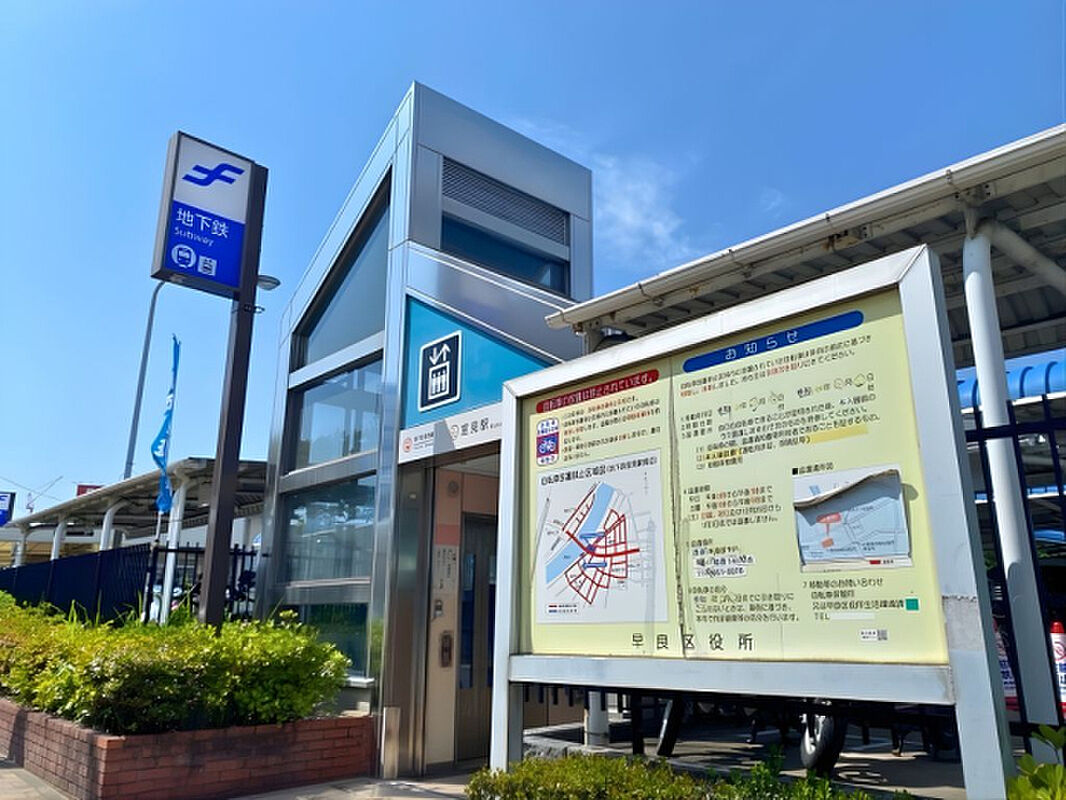 最寄りバス停「愛宕公民館前」まで徒歩8分、地下鉄空港線「室見」駅まで徒歩19分。