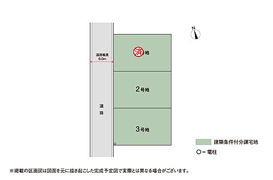 | 備考 | 水道加入金275,000円(税込/1区画/20mm口径)●その他の制限/農地法、文化財保護法、航空法●土地面積は謄本面積であり、確定測量後に面積が増減する場合がございます。土地の測量によって得られた面積と謄本面積に差異が生じた場合、清算単価により売買代金を清算致します。●本分譲地の土地売買契約は、契約締結後3ヶ月以内に販売代理人である積水ハウス株式会社との間で建築工事請負契約が成立することを条件として効力を生じることとなります。期限までに建築工事請負契約が成立しなかったときは、土地売買契約の無効が確定し、受領済の手付金等は、全額無利息にてすみやかに返還いたします。 | ||