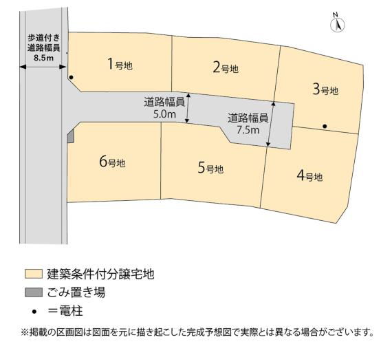 | 主たる設備の概要 | 電気(九州電力)/都市ガス(西部ガス)/上水道(公営水道)/下水道(公共下水道)/雨水(前面道路U字側溝) | 開発許可番号 | 完成済(1、2、3、4、5、6) |
