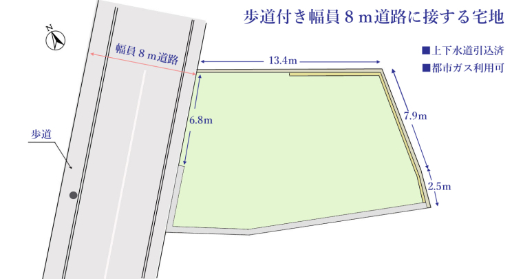 | 建築条件 | 建築条件付 建築条件付き土地とは一定期間内に、その土地に建築する建物の請負契約が締結されることを条件に販売される土地のことです。 土地売買契約締結後、建築請負会社と購入した土地に建築する建物について協議することになります。広告に参考プランが掲載されている場合でも、プランは一例であり、実際の建築プランは建築請負会社と土地購入者で協議・検討することが可能です。 期間内に建築プランが決まらず建築請負契約が成立しなければ土地売買契約は白紙となり、支払済みの金銭はすべて返還されます。 建築請負会社が指定されている場合と指定されていない場合があります。 また、建築条件付き土地の価格には、建物価格は含まれません。 |