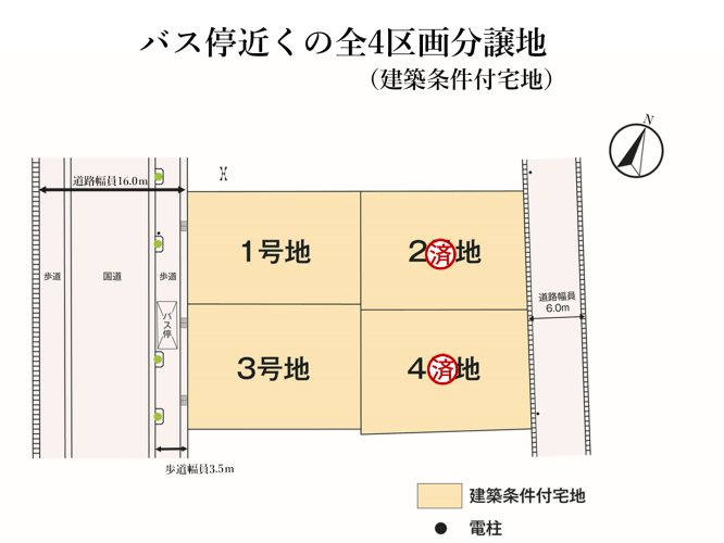 | 建築条件 | 建築条件付 建築条件付き土地とは一定期間内に、その土地に建築する建物の請負契約が締結されることを条件に販売される土地のことです。 土地売買契約締結後、建築請負会社と購入した土地に建築する建物について協議することになります。広告に参考プランが掲載されている場合でも、プランは一例であり、実際の建築プランは建築請負会社と土地購入者で協議・検討することが可能です。 期間内に建築プランが決まらず建築請負契約が成立しなければ土地売買契約は白紙となり、支払済みの金銭はすべて返還されます。 建築請負会社が指定されている場合と指定されていない場合があります。 また、建築条件付き土地の価格には、建物価格は含まれません。 |