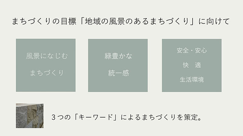 地区計画の区域に定められ、生活利便機能や沿道サービス機能を兼ね備えた住宅地です。周辺環境との調和に配慮したゆとりある住宅団地の形成をはかっています。
