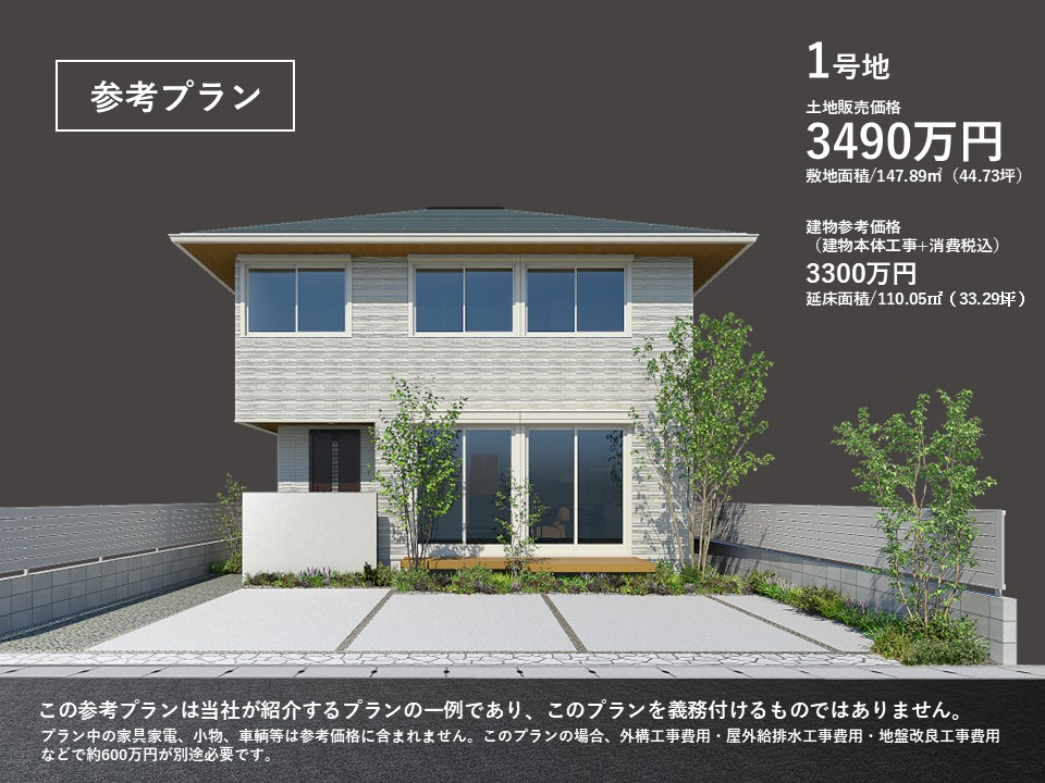| 建物面積 | - | 土地面積 | 147.89m2~180.04m2私道負担有り私道負担面積あり。私道負担面積は2号地2.11m2です。 |