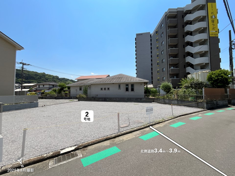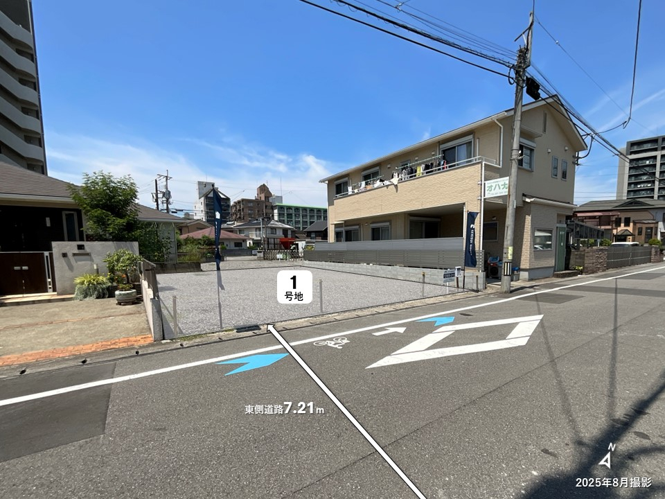 | 主たる設備の概要 | 設備/電気:九州電力、ガス:都市ガス(1号地)・個別プロパン(2号地)、上水道:公営水道、汚水・雑排水:公共下水、雨水:U字側溝(1号地)・L型側溝(2号地) | 開発許可番号 | 完成済(1、2) |
